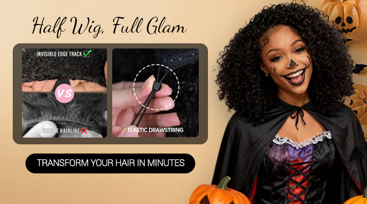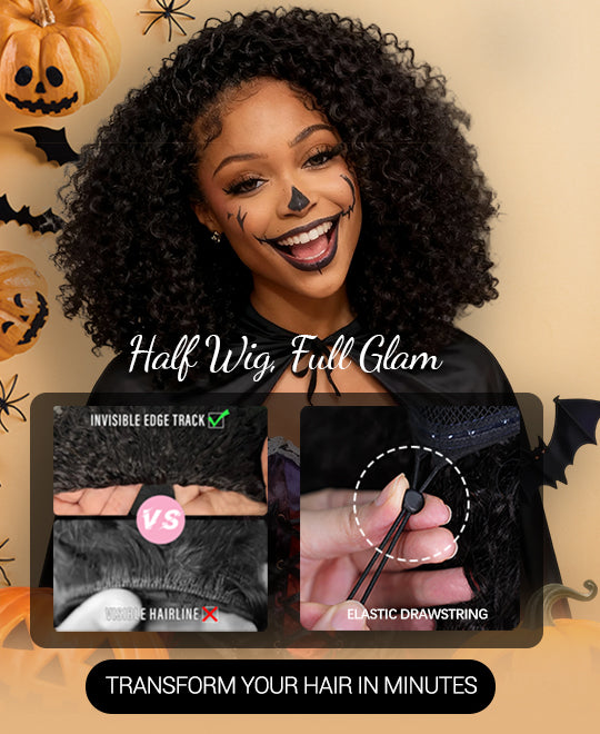 Geeta Kinky Curly Coily Half Wig Invisi Drawstring Glueless Flip Over Wig Flash Sale
