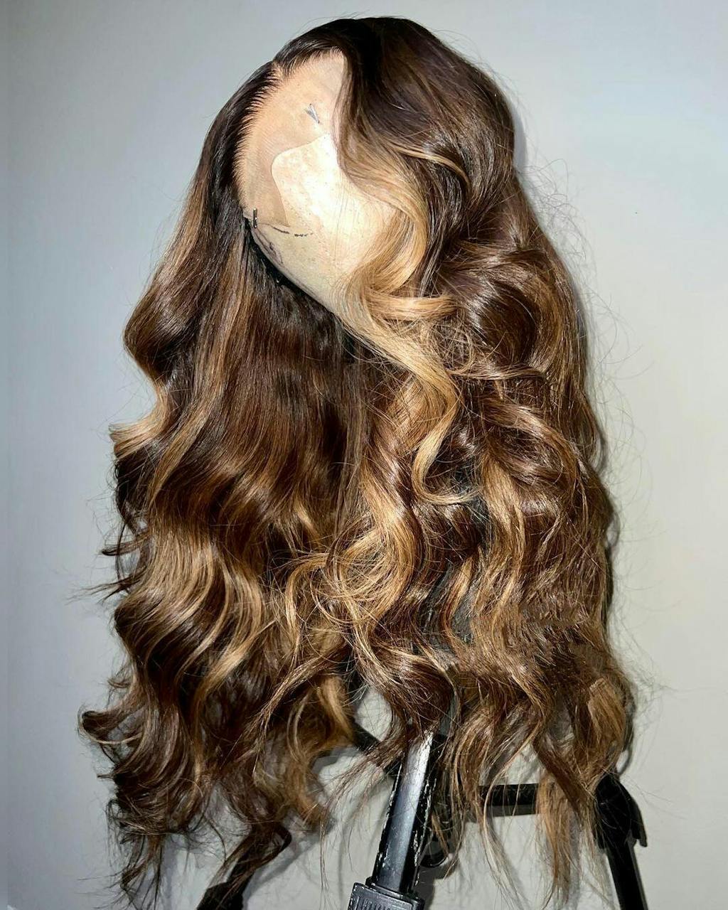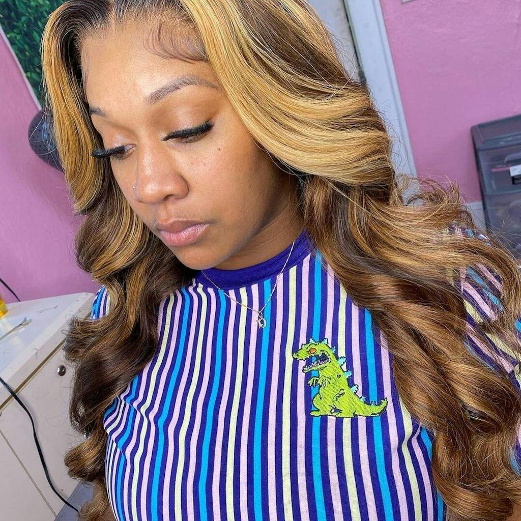 * Unsichtbare Spitzenperücke mit gewellten blonden Highlights * Perfekt mit der Kopfhaut verschmelzen |