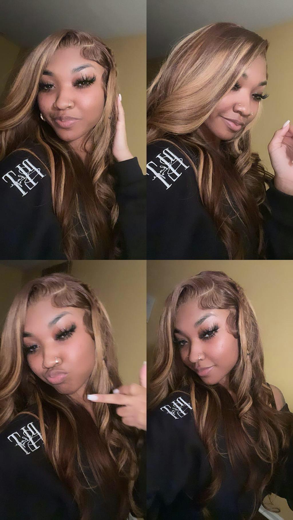 | Eigenschaften | #Perücken in Körperwellenfarben #Perücke mit honigblonden Highlights #Perücke mit Lace-Front-Highlights #schwarze Perücke mit blonden Highlights #unsichtbare Lace-Perücke |