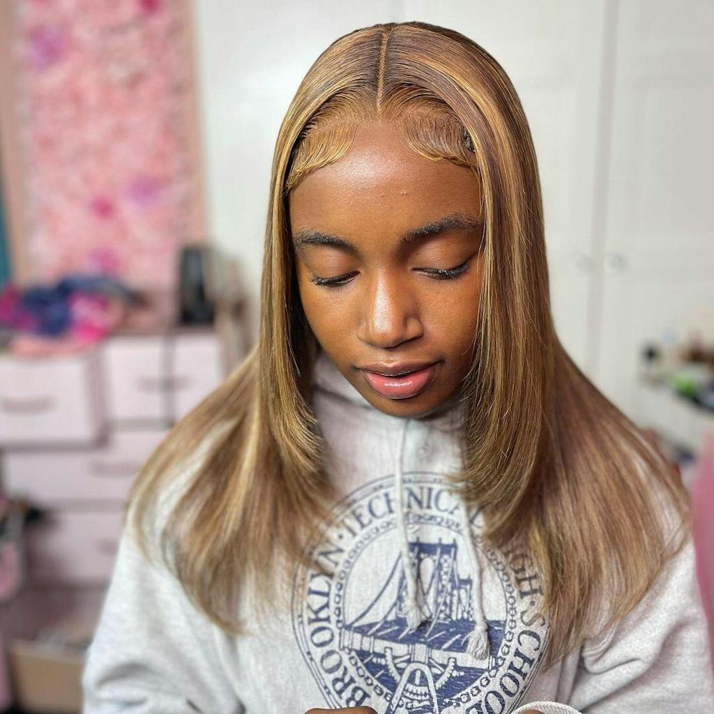 * Klassische braune Perücke mit blonden Highlights * HD Lace schmilzt perfekt mit der Kopfhaut |
