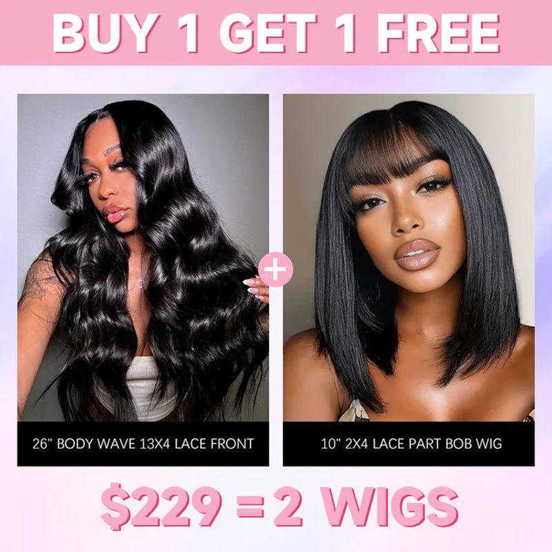 $229 = 2 Wigs| Geeta 26 Inch 13x4 Lace Front Body Wave Wig and 10" Glueless Put On And Go Wig Bogo Sale - GeetaHair
