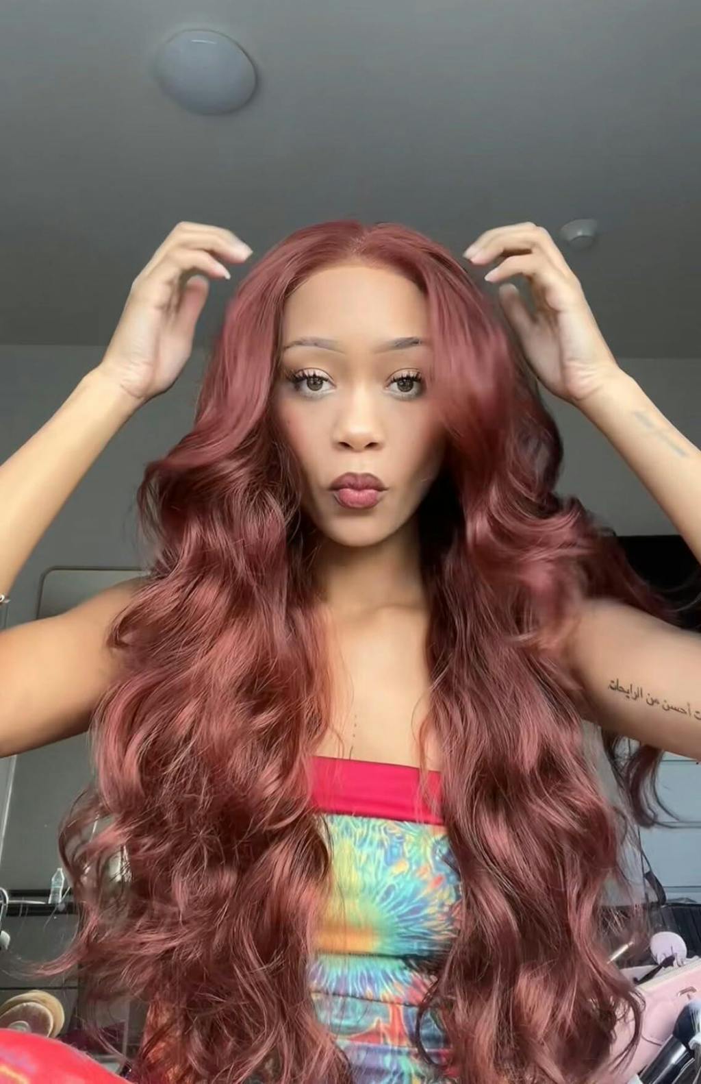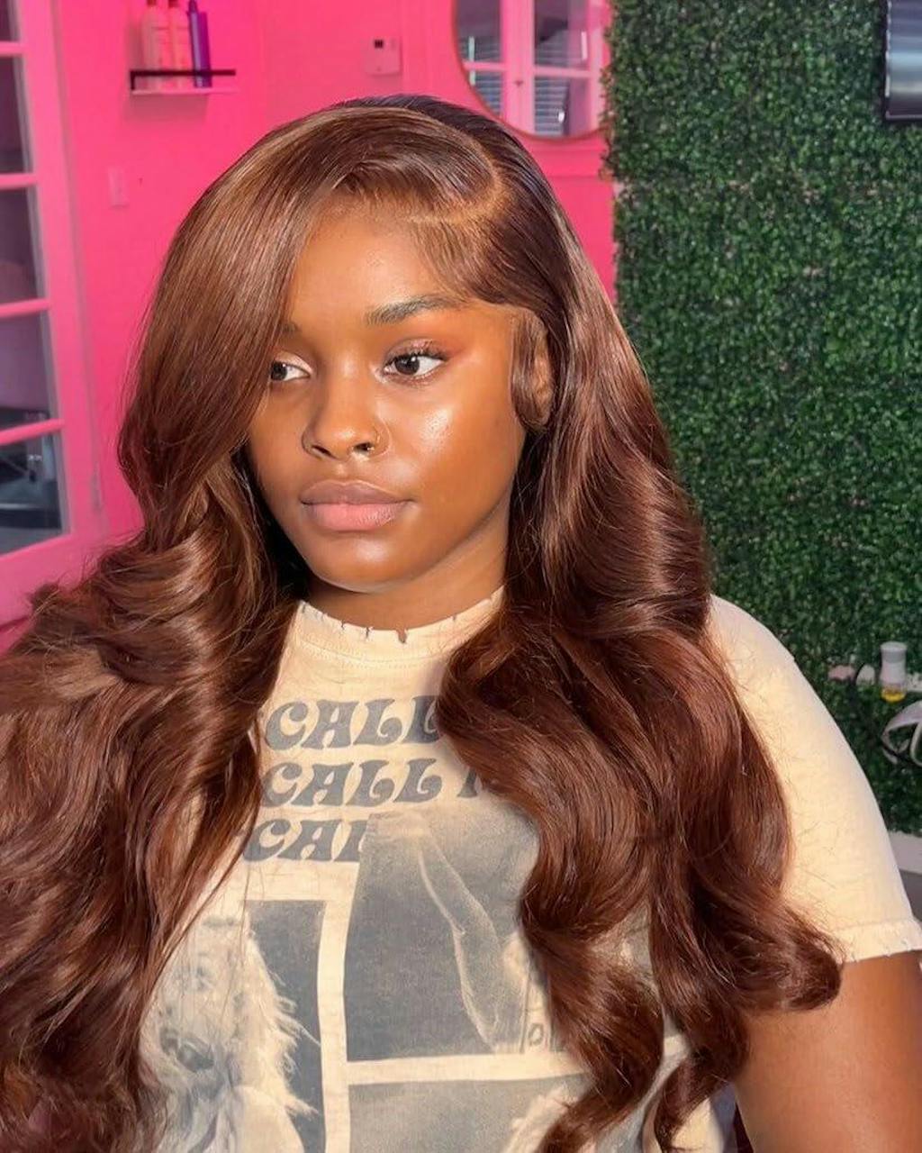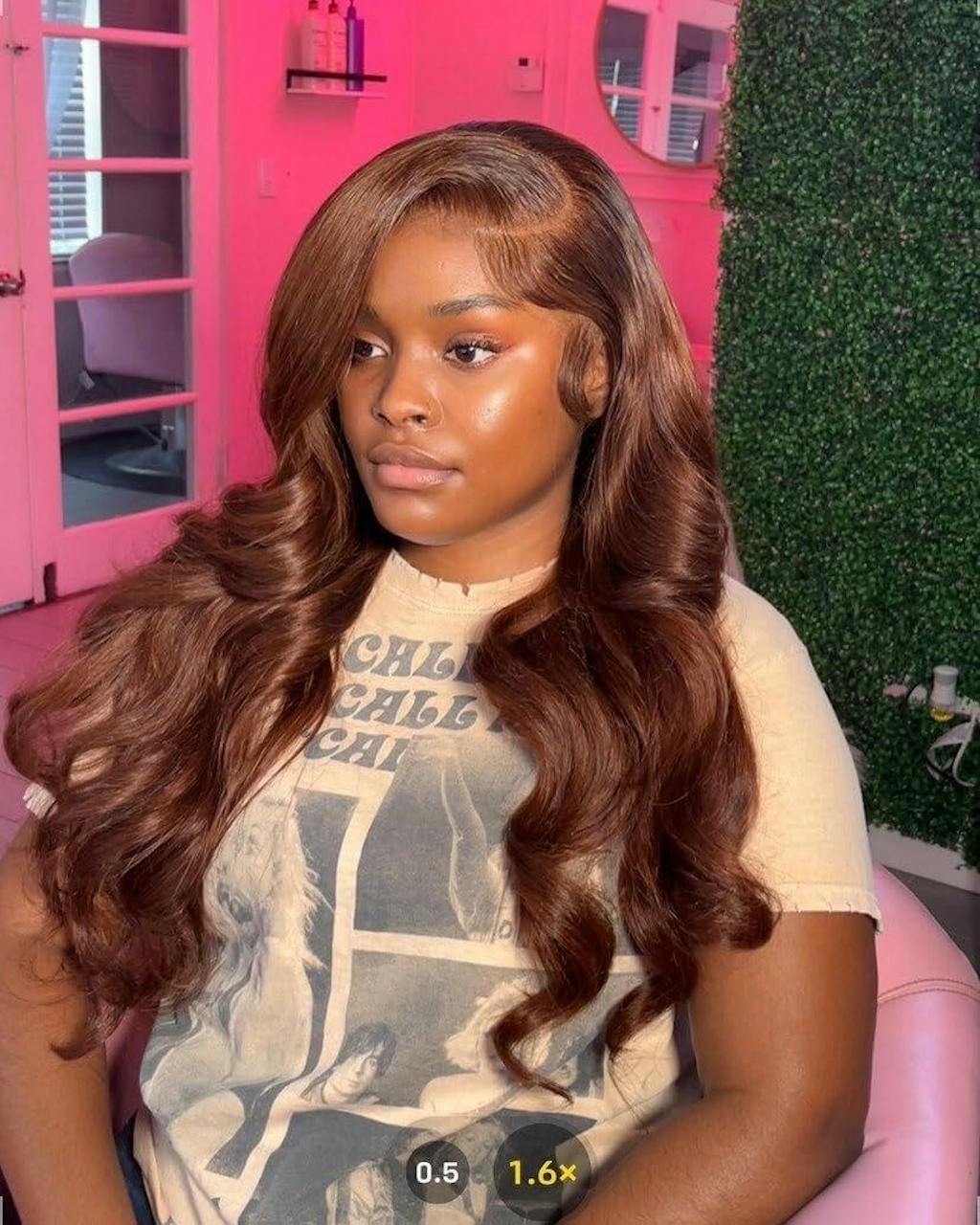 Reddish Brown Color 3D Body Wave 13x4 Lace Front Wig Put On and Go Invisi Drawstring Wig