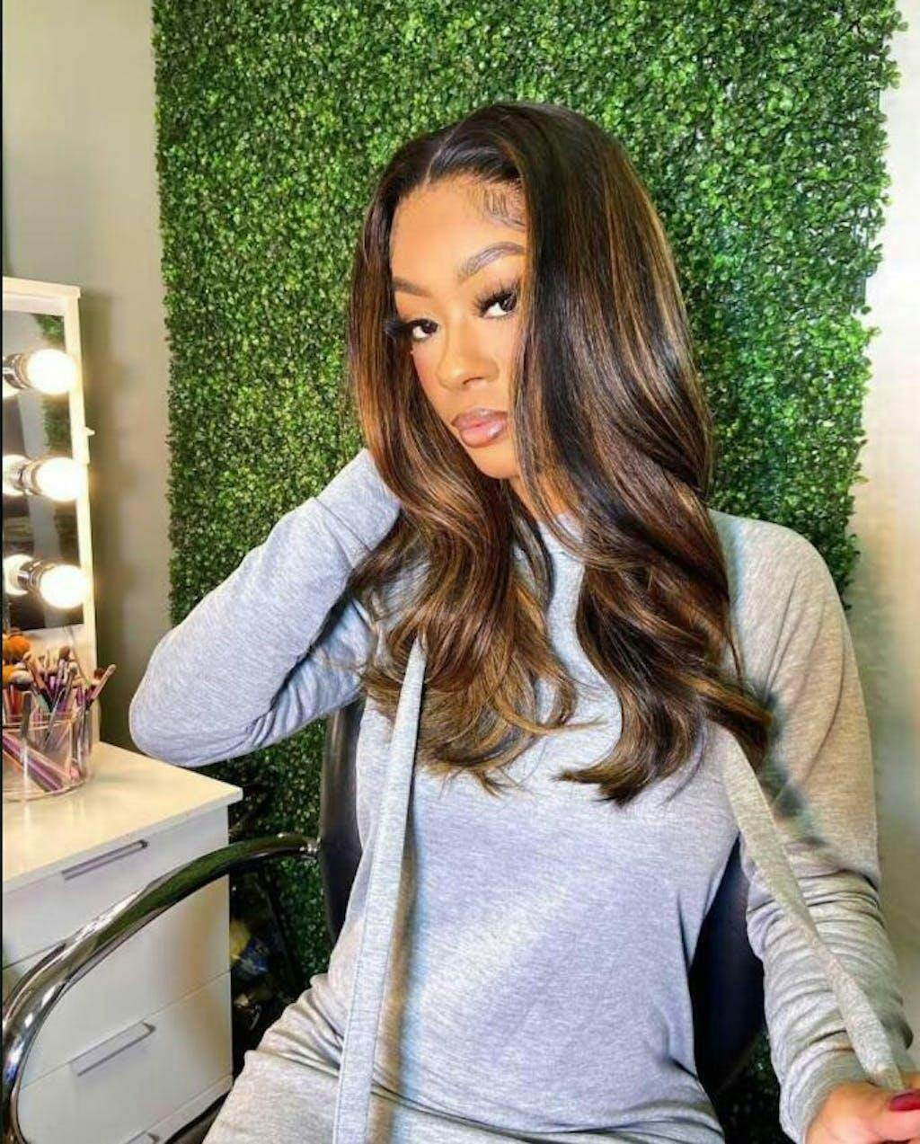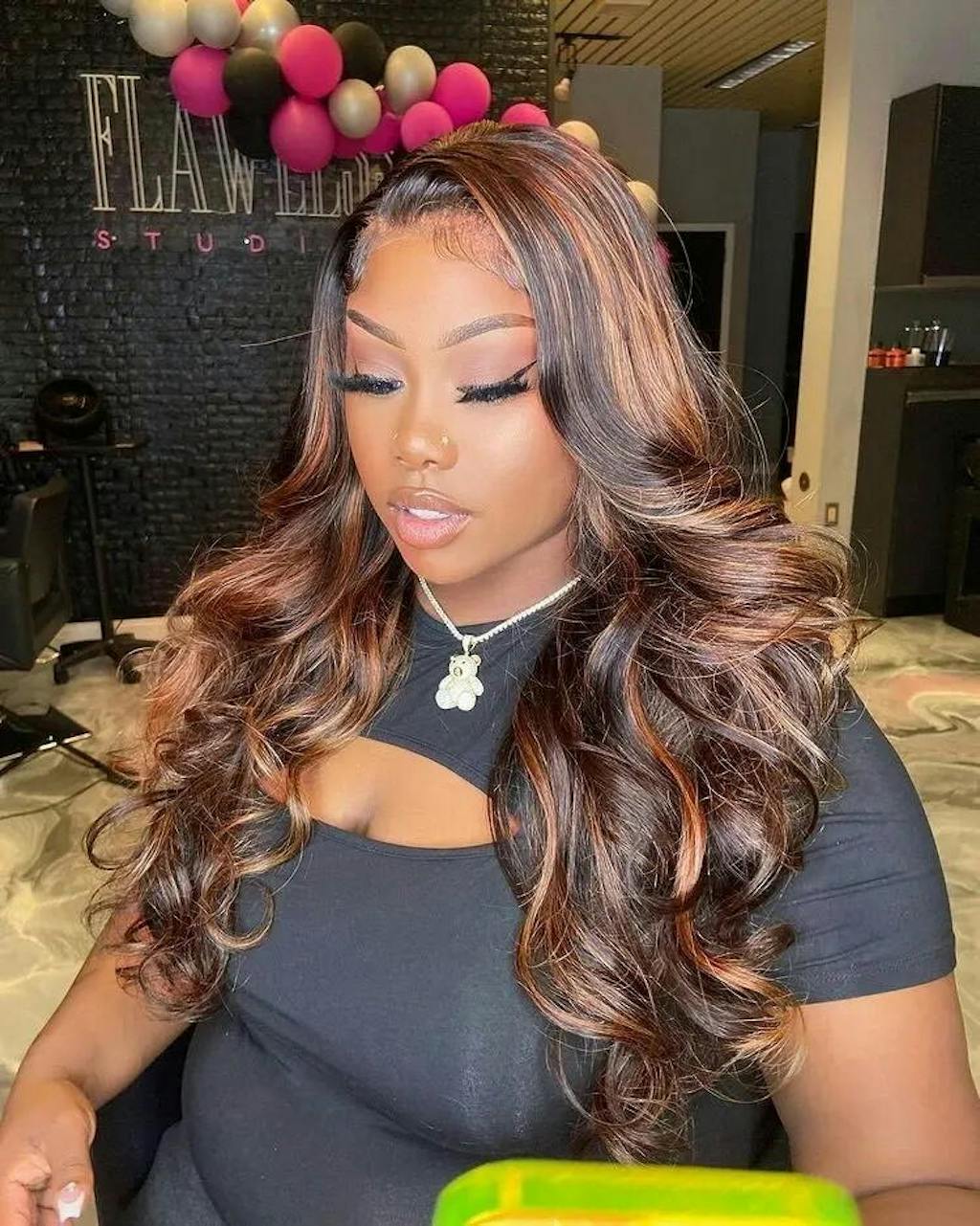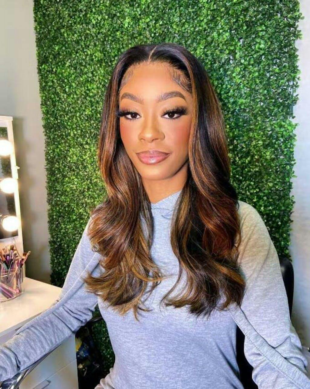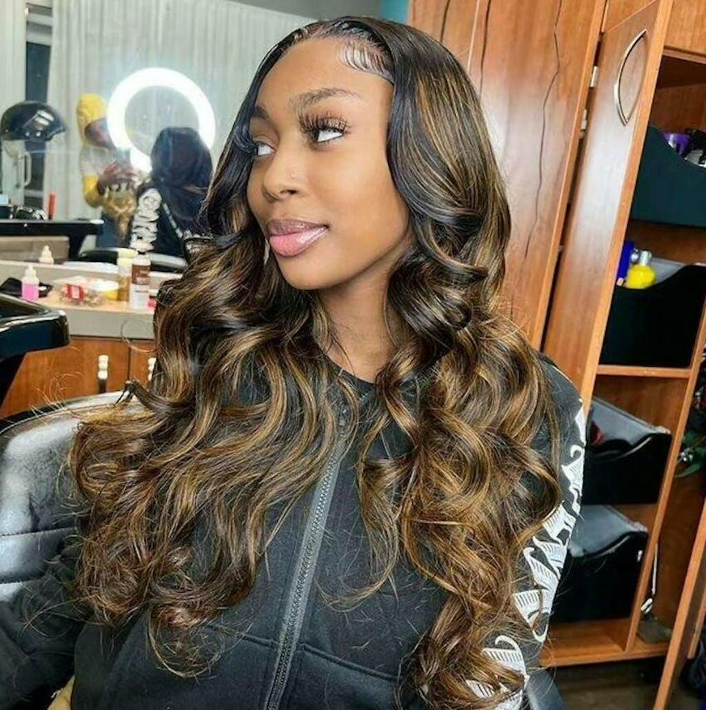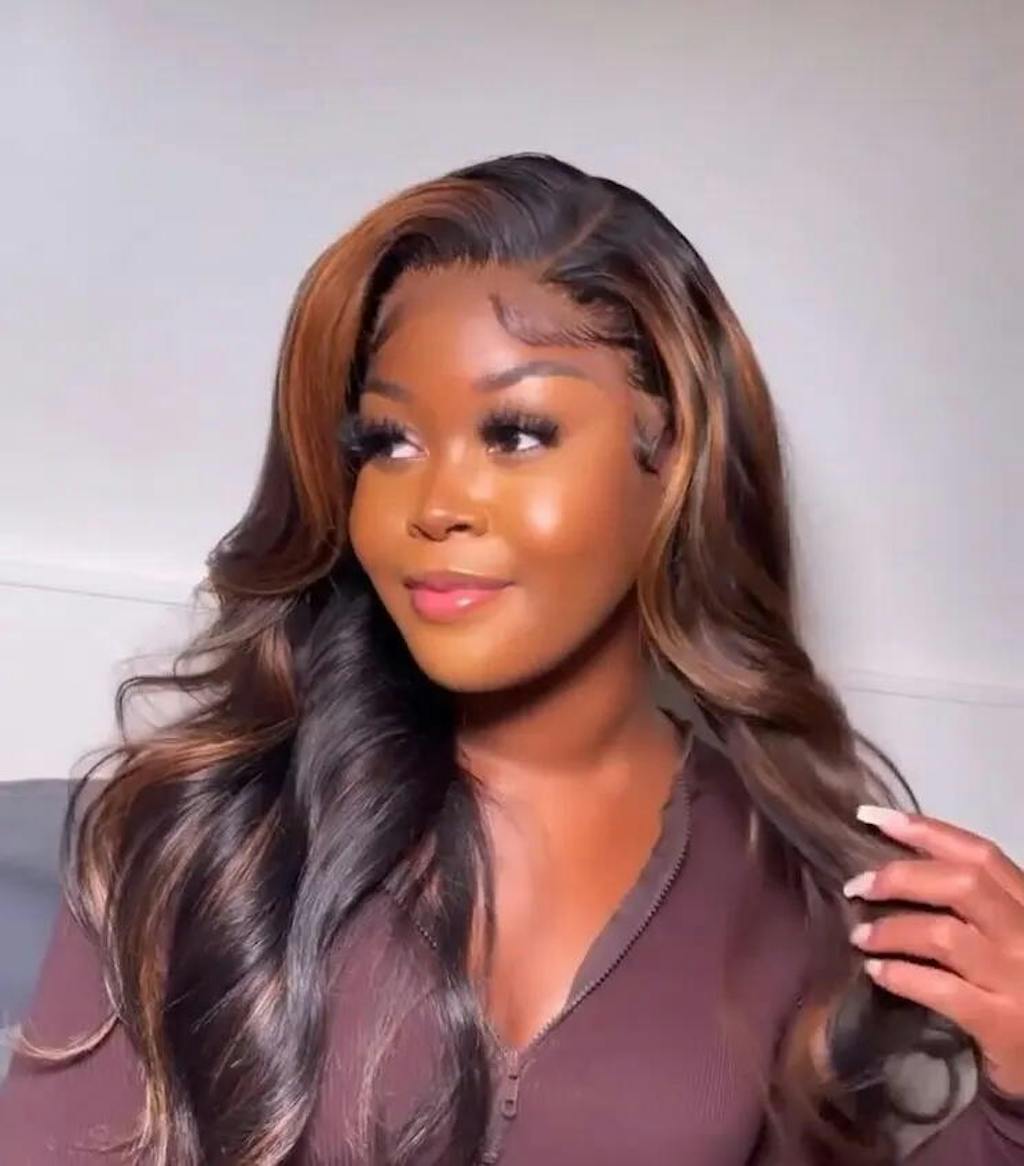 | Caractéristiques | #perruque ondulée #perruque à reflets #perruque en dentelle invisible #perruques colorées #perruque noire avec reflets blonds |