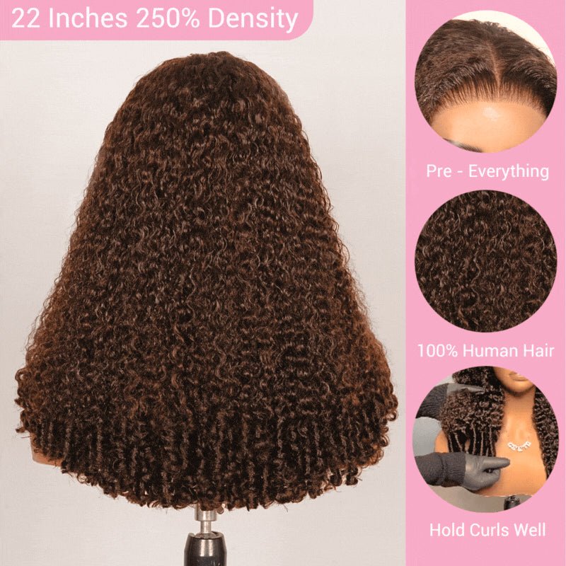 Chocolate Brown Burmese Curly Lace Front Colored Wig 100% Human Hair Wigs Curly Hair Flash Sale - GeetaHair