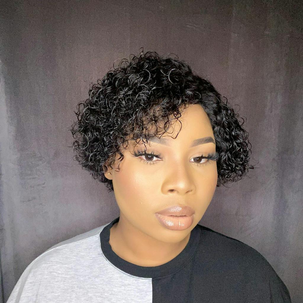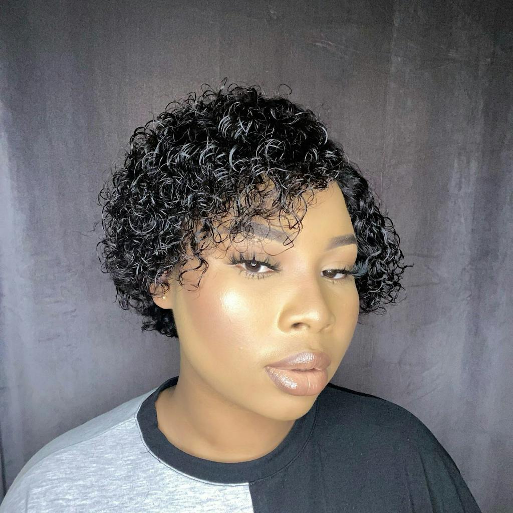 Short Curly Pixie Cut J Part Lace Frontal Wig Pre Plucked Natural Hairline For Women -Geetahair
